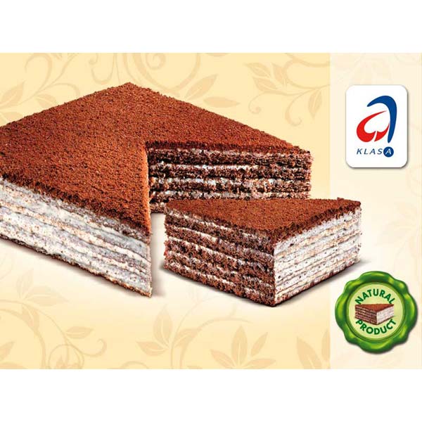 Gelaagde cacao-honingcake met melkroomvulling (52 %), gegarneerd met honingkruimels. Verpakt in een beschermende atmosfeer. Gebaseerd op een Armeens familierecept.