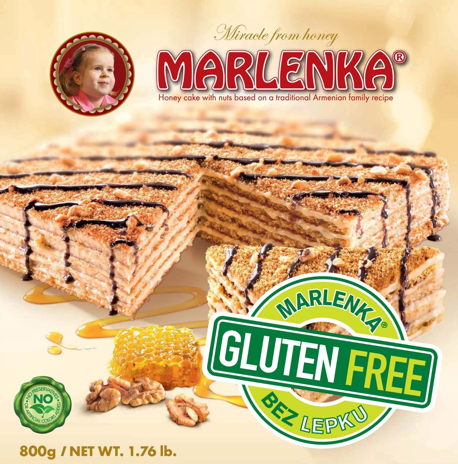 Glutenvrije honingcake MARLENKA® met walnoten 800 g
