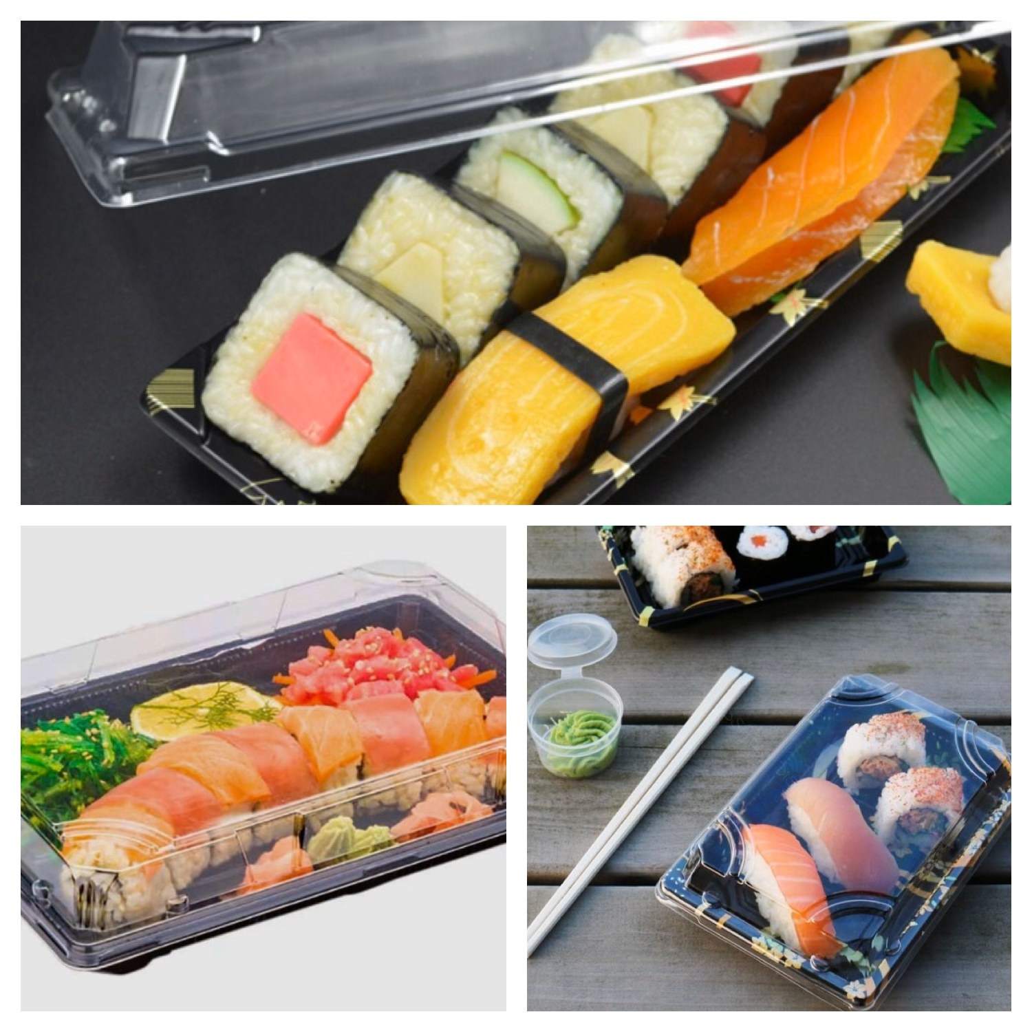 Sushi trays van plastic zijn populair bij restaurants, sushibars en cateraars om sushi op een nette en georganiseerde manier te presenteren en te serveren. Ze zijn ook handig voor afhaalmaaltijden en bezorging, omdat ze de sushi veilig en hygiënisch houden tijdens transport. Verpak je sushi in onze mooie sushi trays en dat maakt de sushi nóg aantrekkelijker!